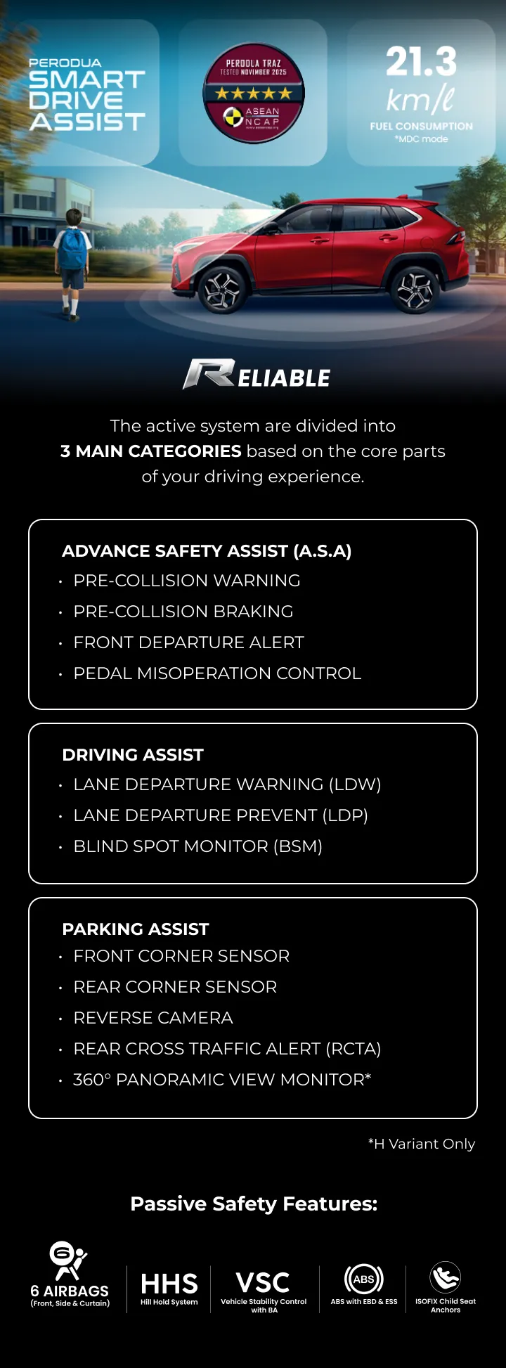 From fuel-efficient performance to a full suite of safety features and Perodua Smart Drive Assist, this is confidence you can count on, day after day.